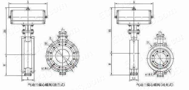 5、气动三偏心蝶阀具有双向密封功能,安装时不受介质流向的限制,也不受空间位置的影响,可在任何方向安装。
